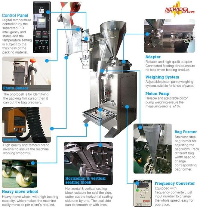 Economic paste packaging machine, suitable for paste foodstuff, medicine and chemicals, such as pesticide shampoo, body foam, bath lotion, facial cream, ingredient oil, fruit sauce, ketchup, honey etc.