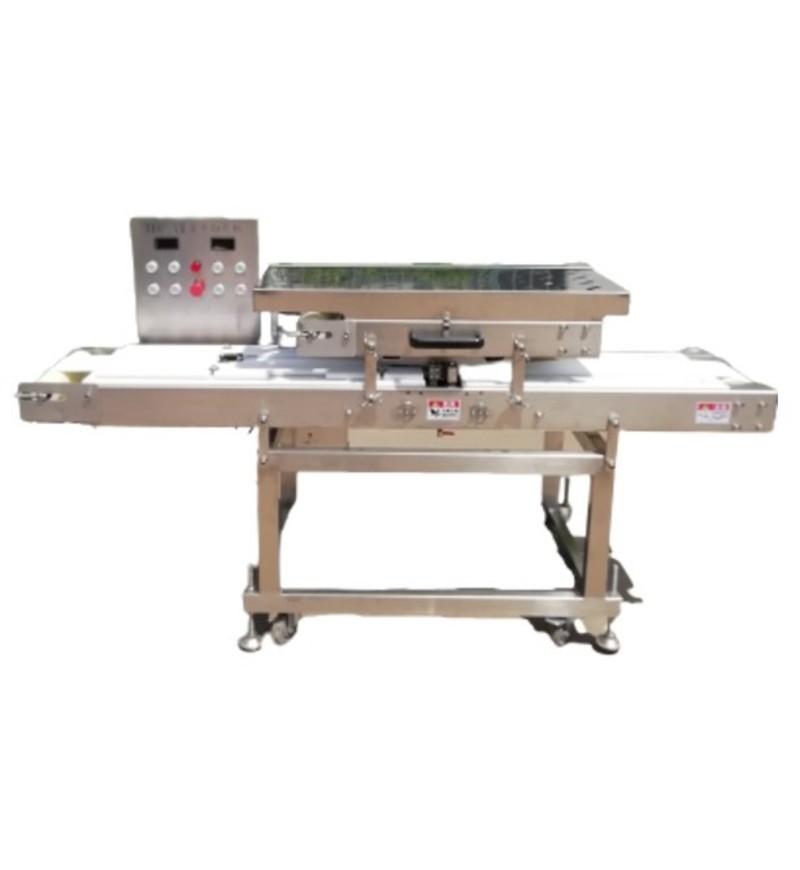 This equipment is professionally used for slicing fresh or cooked chicken breasts and duck breasts. It cuts the whole chicken breast horizontally (horizontally) in multiple slices at one time, that is, puts a complete chicken and duck breast on the conveyor belt of the machine. After the conveyor belt passes, the chicken breast is completely cut.