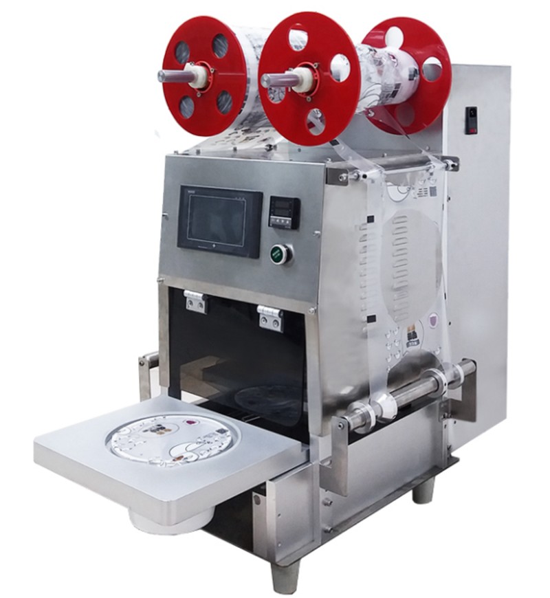 This machine is a new desktop automatic sealing machine developed according to market demand, which improves production efficiency and saves effort. The sealing film is made of plastic composite coils, automatic punching, automatic sealing and automatic waste discharge, which solves some cups without lids. , The sealing problem of the box, no matter what shape, it can be sealed, which saves space, and can seal a box at a time, which is very popular among users.