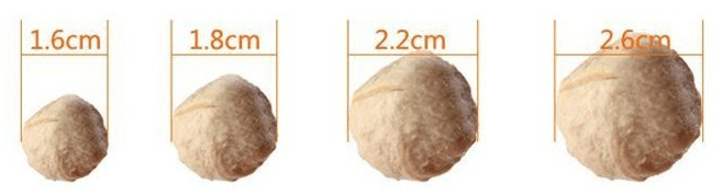Diameter of mold 1.6cm, 1.8cm, 2.2cm , 2.6cm