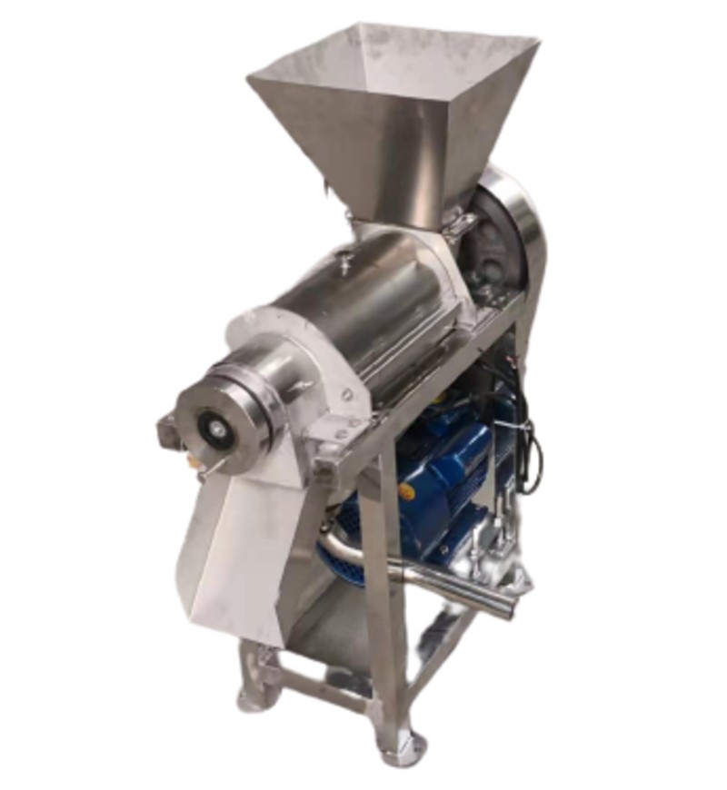 It is composed of front support, feed hopper, spiral, filter screen, juicer, rear support, slag trough and other parts. The left end of the spiral spindle is supported in the rolling bearing housing, and the right end is supported in the handwheel bearing housing. The electric motor drives the spiral through a pair of V-belt pulleys to work.