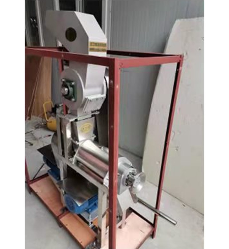 It is composed of front support, feed hopper, screw, filter screen, juicer, rear support, slag trough and other parts. The screw spindle is supported in the rolling bearing, the right end is supported in the hand wheel bearing, and the motor passes through a pair of V-belt pulleys. Drive the screw to work.