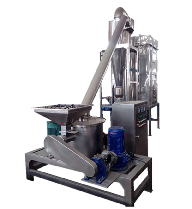 The machine is made up of three parts: main machine, auxiliary machine and electric control box. It has the properties of wind selection, having no sieve or net, and an even granularity of the processed material. The production process going on continuously, the machine can undertake the grinding of chemical products. Food industries, herbs, medicine, cosmetics, plastic, dyestuff, resin, grain, etc.