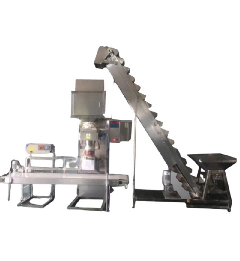 - The product is elevated to the feed hopper of the weighing machine by the elevator.