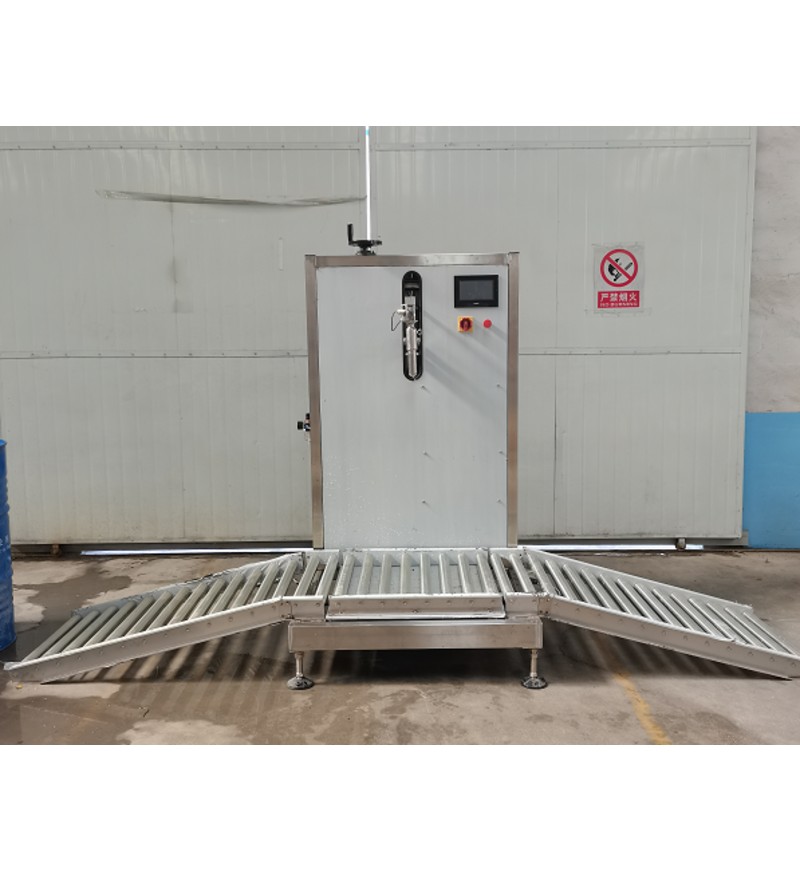 IA series Weighing Filling Machine. It’s controlled by PLC, and filling quantity is adopt to weighing sensor.