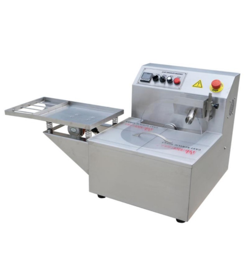 - When the chocolate is completely melted and has reached the desired temperature, turn the wheel of the machine