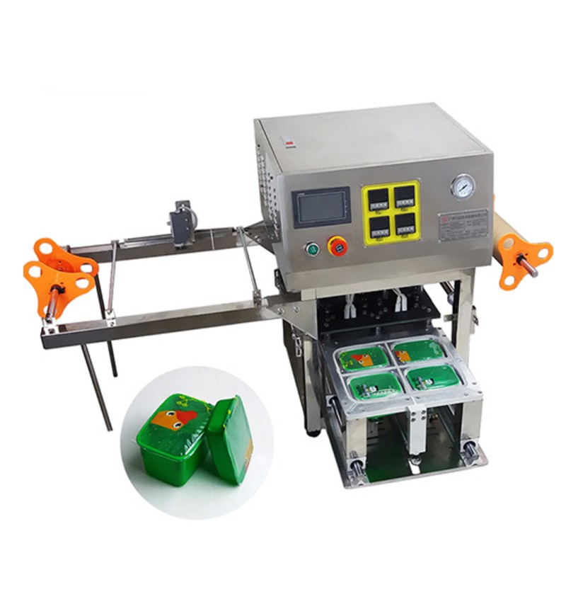 This machine is a new desktop automatic sealing machine developed according to market demand, which improves production efficiency and saves effort. The sealing film is made of plastic composite coils, automatic punching, automatic sealing and automatic waste discharge, which solves some cups without lids. , The bottle sealing problem, no matter what shape, can be sealed, saving space, can seal one box, two boxes, four boxes at a time, it is very popular among users.