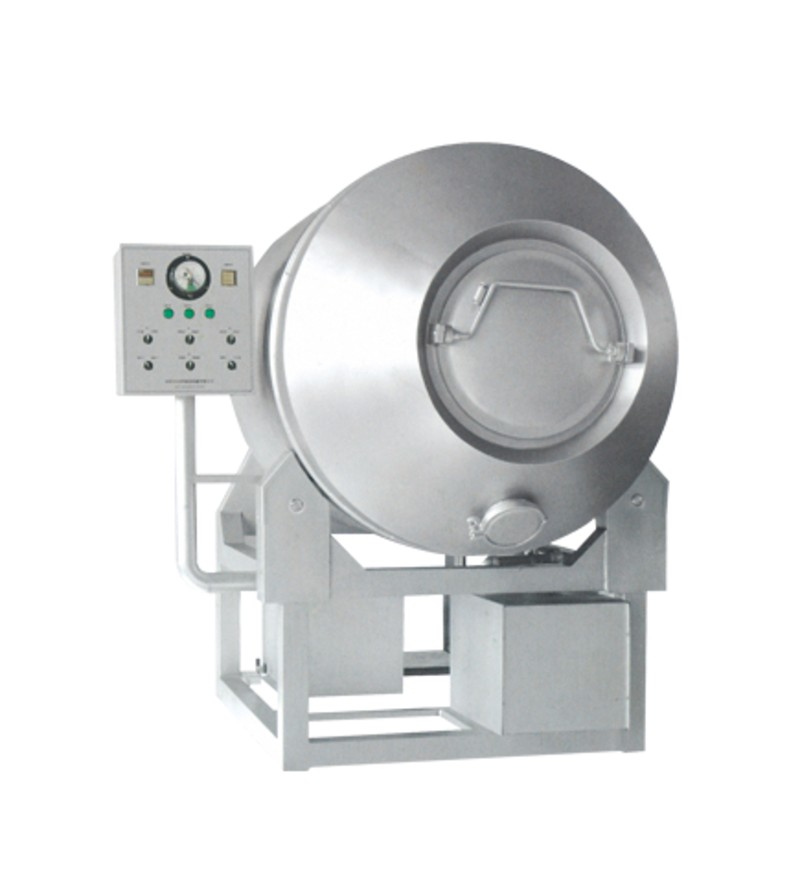 Vacuum tumbling machine is in a vacuum state, the impact of the use of physical principles, so that flip up and down the meat in the drum, and mutual impact, beat, to massage, pickled role, can make even the absorption of pickled meat, the meat knot to improve focus and the product flexibility; this machine has pulmonary respiratory function, so that the product inside the drum to do expansion reduced reciprocating motion, to improve the organizational structure of the meat and improve the aspect effect, an increase of production rate. Can enhance retention and improve the internal structure of the product. A new generation of automatic Vacuum Tumbler Vacuum Tumbler and have a characteristic, but also available with an optional computer-controlled frequency conversion function. The machine use a more secure, more convenient and more energy efficient. Machine stainless steel, compact structure, roller ends are sealed with screw-cap structure, the largest increase in drum beat inside the space, so that the effect of tumbling product uniformity, noise, reliable performance, easy operation, more efficient use of high.