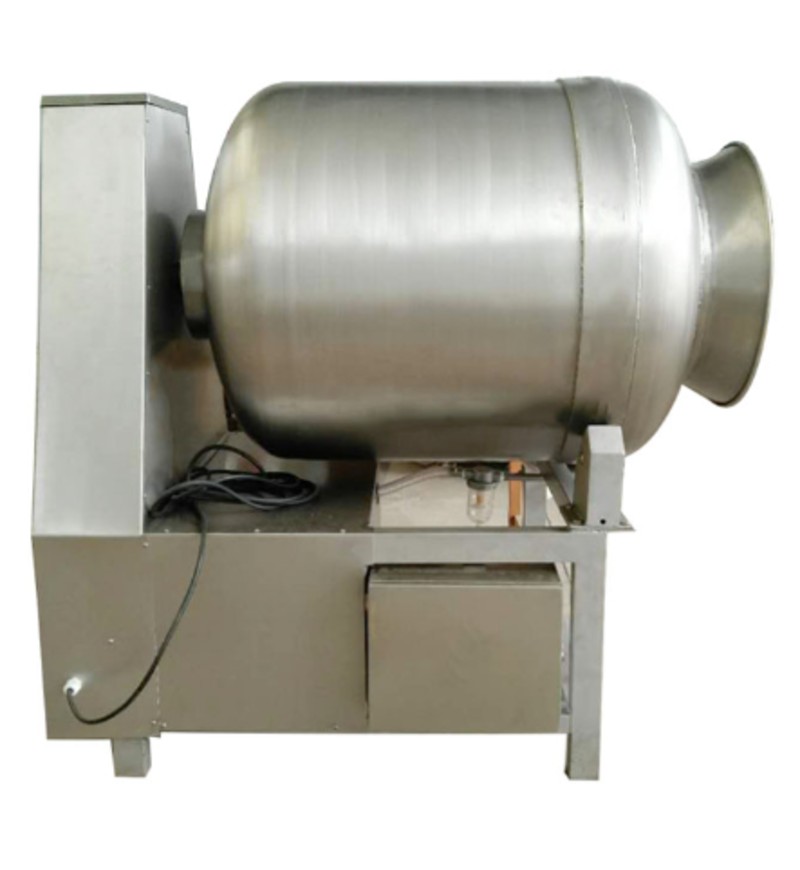 The vacuum tumbler uses the principle of physical impact under the vacuum state to turn the meat or meat filling up and down in the drum to achieve massage and pickling. The pickling liquid is fully absorbed by the meat to enhance the binding force and water retention of the meat. , Improve product flexibility and yield. This machine is made of stainless steel, with reasonable structure, large rolling space, stable operation, low noise, good performance, simple operation and high equipment utilization.